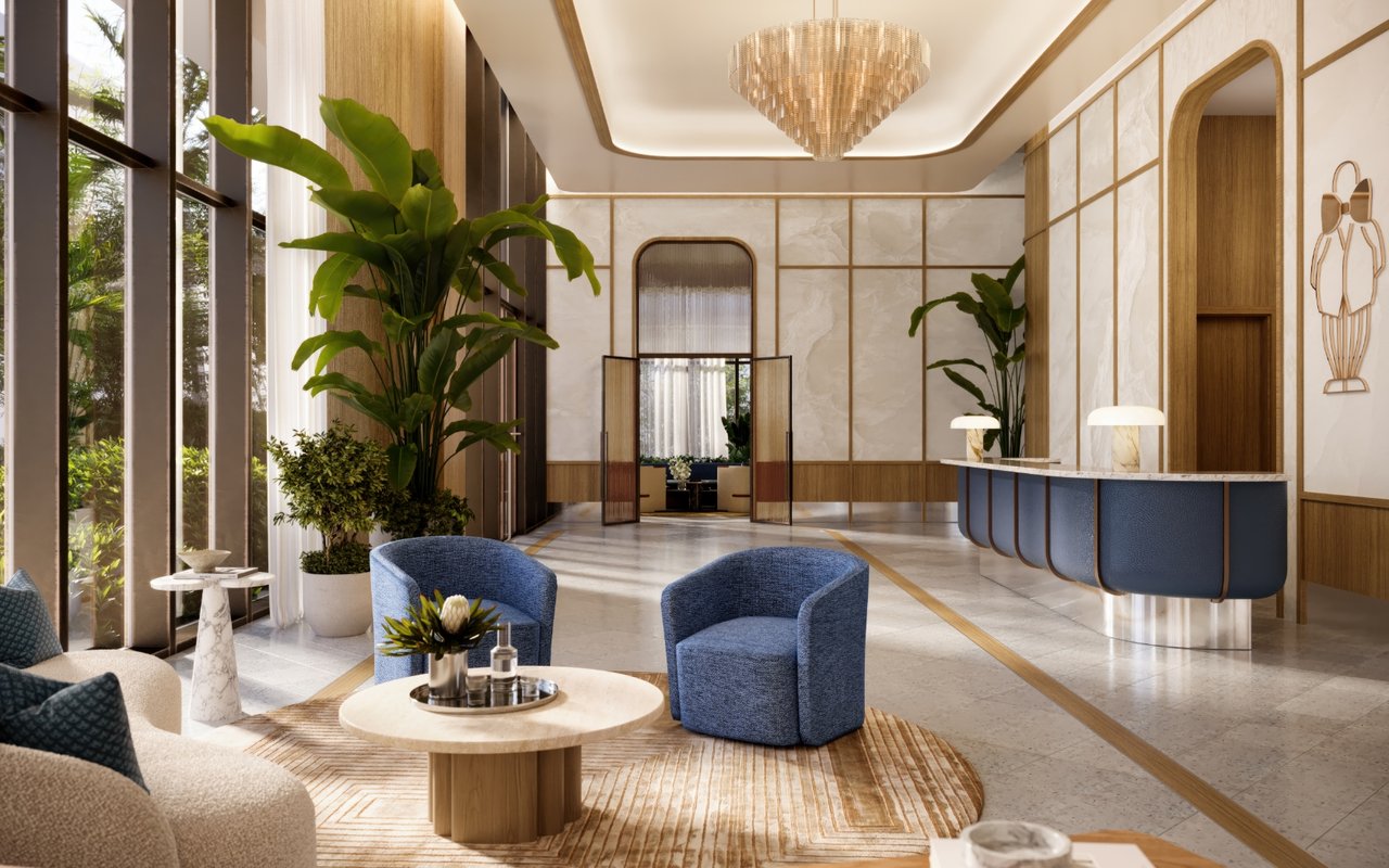 • Residential Lobby with Lounge Seating Areas and Private High-Speed Elevators